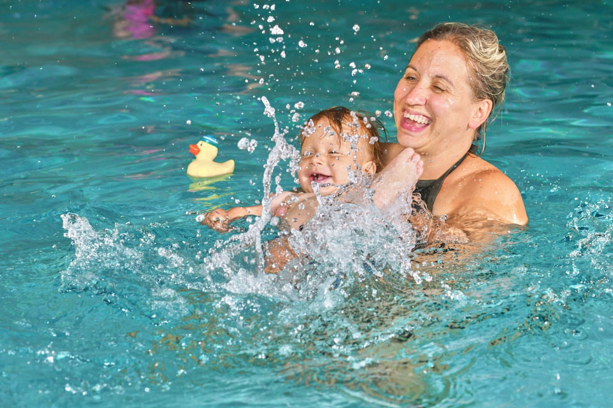 Swimming also provides a special opportunity for some skin-to-skin bonding time with your little one, with no distractions and limitations. For that half an hour, it’s just you and your baby learning key water skills together.